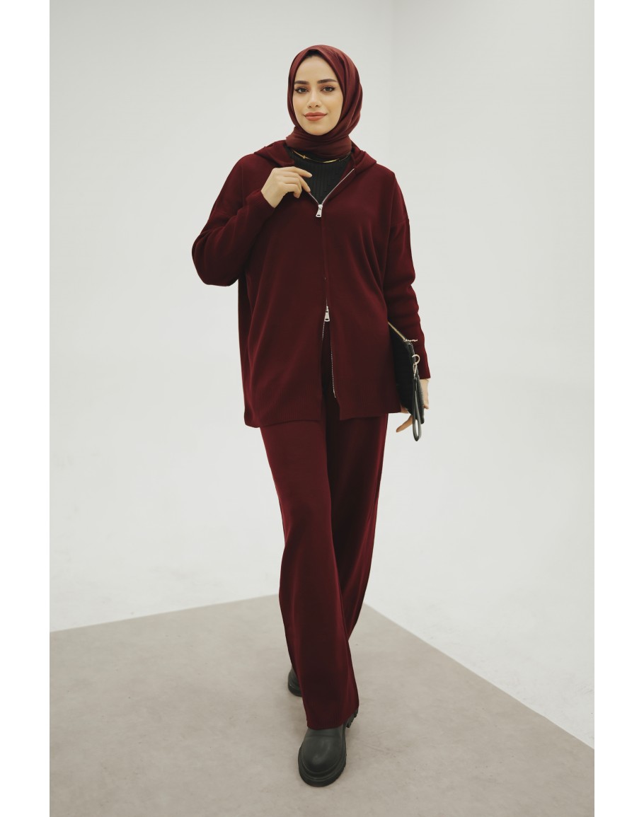 Triko Kapşonlu Bordo Takım